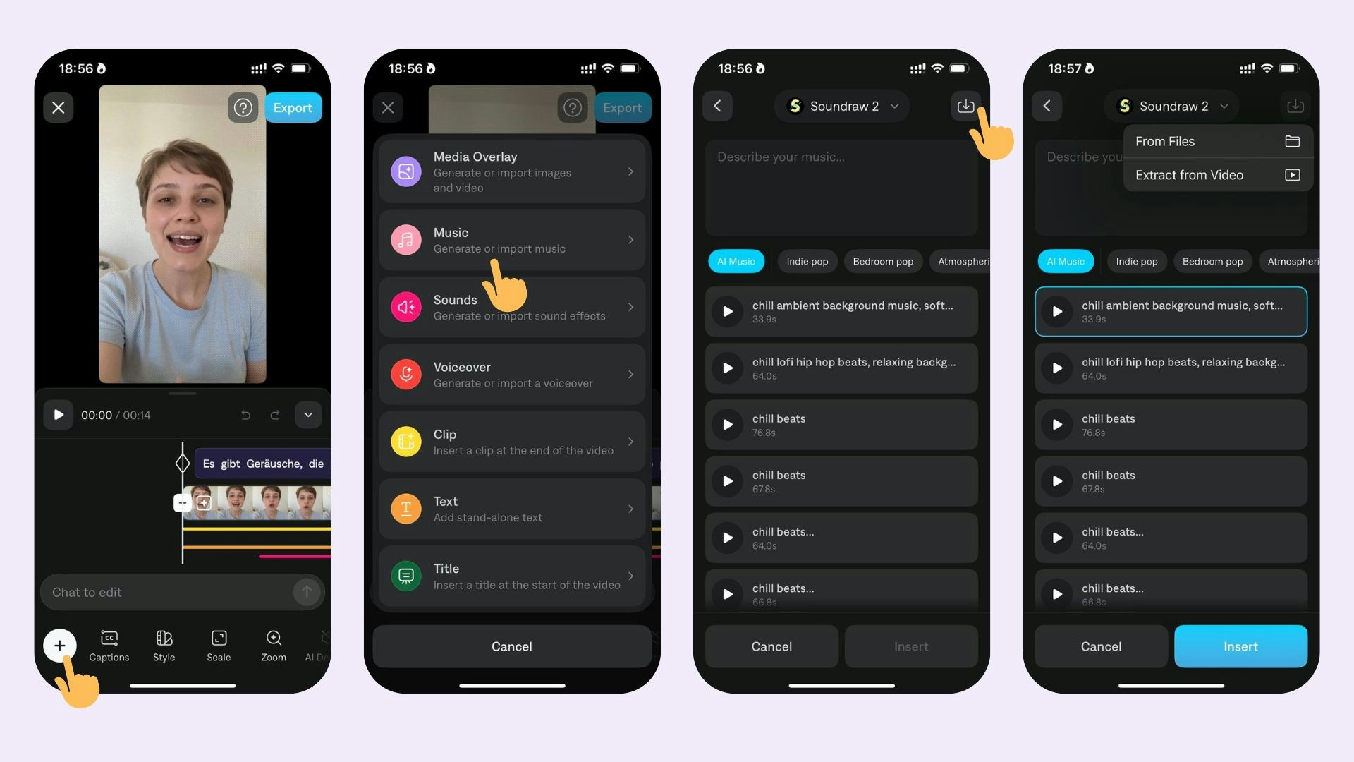 - Choose an existing track or generate your own with a prompt