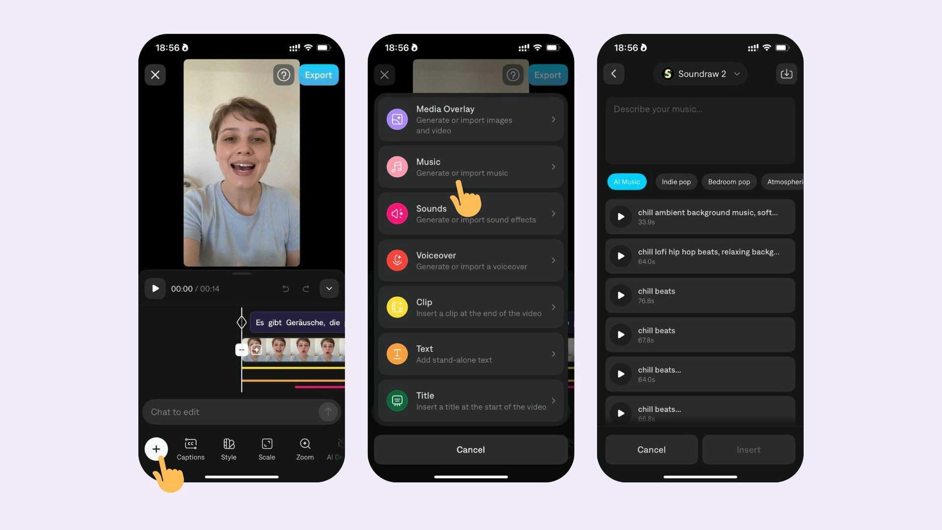 For generating music tracks, Captions supports 2 integrations with different AI models: