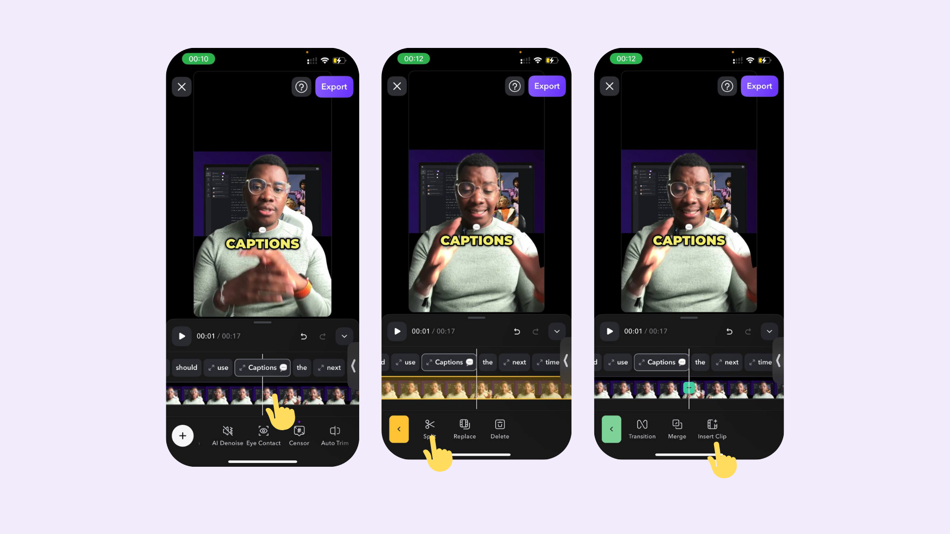 - Tippen Sie auf das Symbol zwischen Ihren beiden geteilten Clips