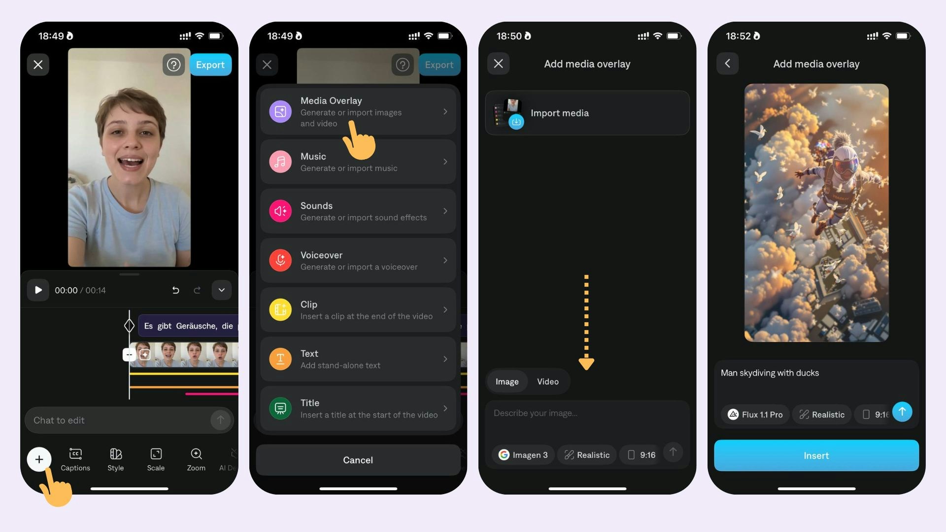For generating image overlays, Captions supports 12 integrations with different AI models: